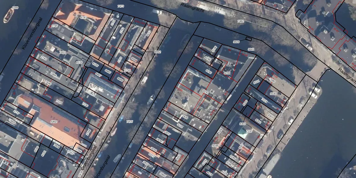 Het perceel waarop Groenburgwal 11-B staat heeft een oppervlakte van 984 m². Dit is een groot perceel. De perceeloppervlakte wordt geregistreerd door het Kadaster. Gedetailleerde informatie over de maten van dit perceel kunt u vinden in het rapport Kadastrale kaart met maatvoering van Groenburgwal 11-B.