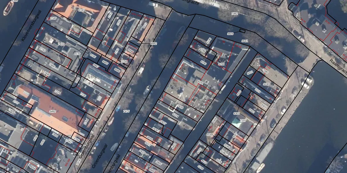 Het perceel waarop Groenburgwal 13-F staat heeft een oppervlakte van 984 m². Dit is een groot perceel. De perceeloppervlakte wordt geregistreerd door het Kadaster. Gedetailleerde informatie over de maten van dit perceel kunt u vinden in het rapport Kadastrale kaart met maatvoering van Groenburgwal 13-F.
