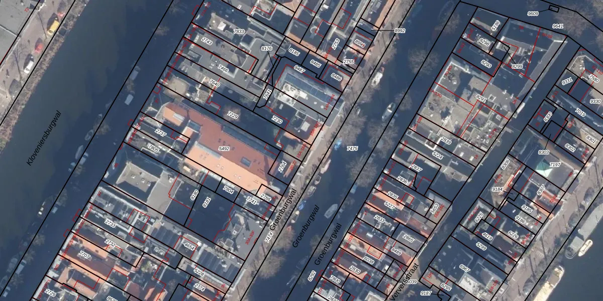 Het perceel waarop Groenburgwal 18-A staat heeft een oppervlakte van 368 m². Dit is een groot perceel. De perceeloppervlakte wordt geregistreerd door het Kadaster. Gedetailleerde informatie over de maten van dit perceel kunt u vinden in het rapport Kadastrale kaart met maatvoering van Groenburgwal 18-A.
