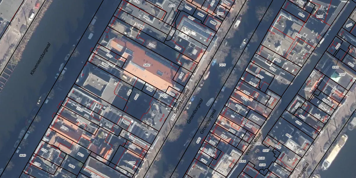 Het perceel waarop Groenburgwal 24-C staat heeft een oppervlakte van 706 m². Dit is een groot perceel. De perceeloppervlakte wordt geregistreerd door het Kadaster. Gedetailleerde informatie over de maten van dit perceel kunt u vinden in het rapport Kadastrale kaart met maatvoering van Groenburgwal 24-C.