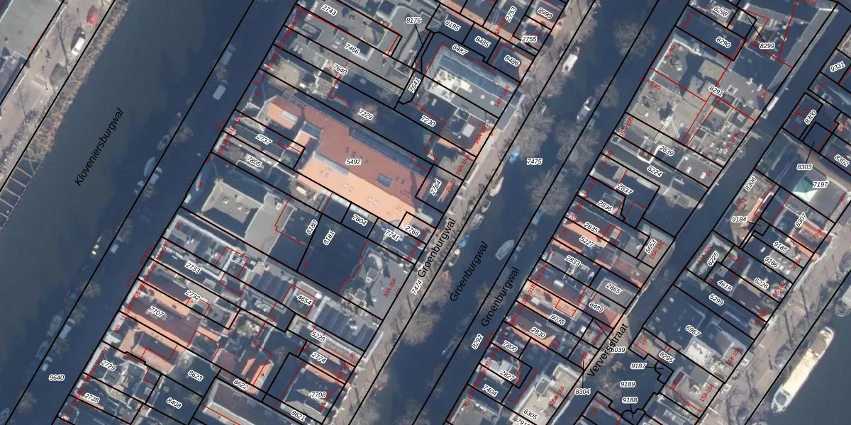 Het perceel waarop Groenburgwal 24-F staat heeft een oppervlakte van 706 m². Dit is een groot perceel. De perceeloppervlakte wordt geregistreerd door het Kadaster. Gedetailleerde informatie over de maten van dit perceel kunt u vinden in het rapport Kadastrale kaart met maatvoering van Groenburgwal 24-F.