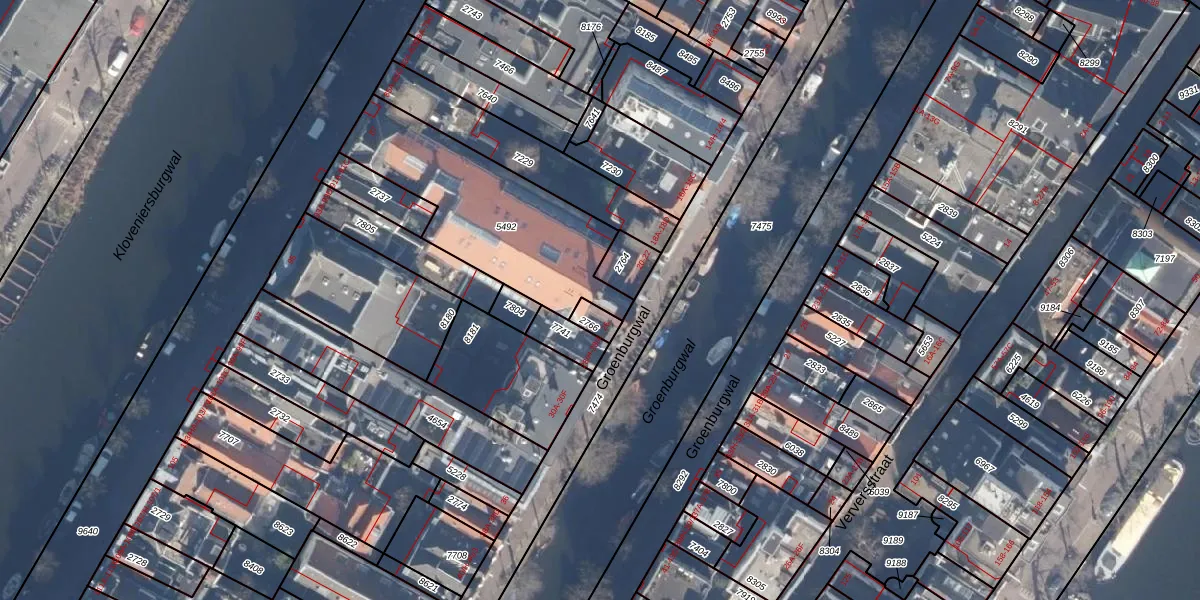 Het perceel waarop Groenburgwal 24-G staat heeft een oppervlakte van 706 m². Dit is een groot perceel. De perceeloppervlakte wordt geregistreerd door het Kadaster. Gedetailleerde informatie over de maten van dit perceel kunt u vinden in het rapport Kadastrale kaart met maatvoering van Groenburgwal 24-G.
