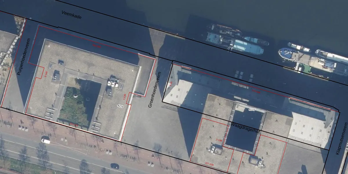 Groenhoedenveem 2 is gelegen op kadastraal perceel ASD10N4115. Deze kadastrale aanduiding is uniek en wordt gebruikt door het Kadaster om eigendomsrechten en andere zakelijke rechten vast te leggen. Het perceel maakt onderdeel uit van de kadastrale gemeente Amsterdam.