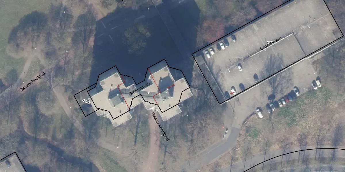 Het perceel waarop Groenhoven 147 staat heeft een oppervlakte van 1130 m². Dit is een zeer groot perceel. De perceeloppervlakte wordt geregistreerd door het Kadaster. Gedetailleerde informatie over de maten van dit perceel kunt u vinden in het rapport Kadastrale kaart met maatvoering van Groenhoven 147.