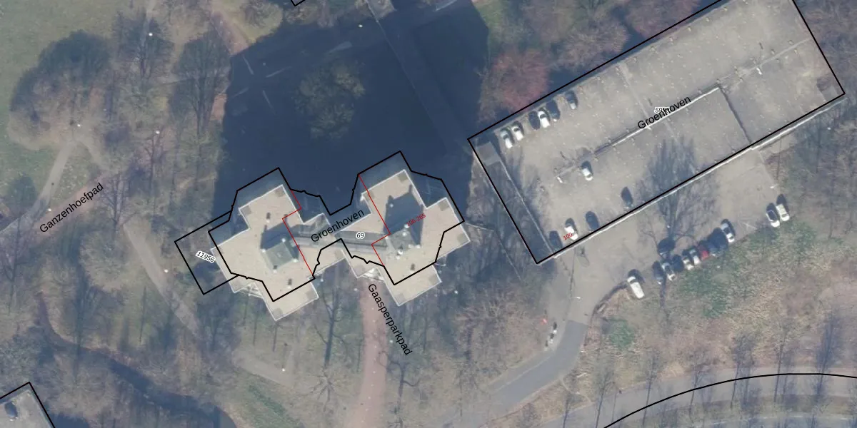 Het perceel waarop Groenhoven 157 staat heeft een oppervlakte van 1130 m². Dit is een zeer groot perceel. De perceeloppervlakte wordt geregistreerd door het Kadaster. Gedetailleerde informatie over de maten van dit perceel kunt u vinden in het rapport Kadastrale kaart met maatvoering van Groenhoven 157.