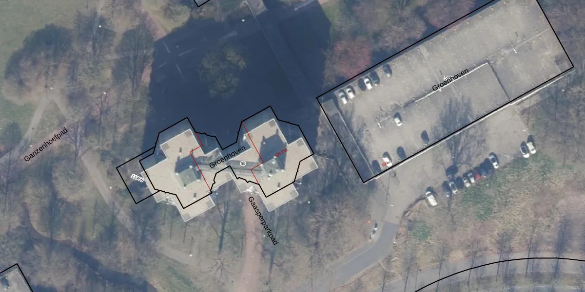 Het perceel waarop Groenhoven 167 staat heeft een oppervlakte van 1130 m². Dit is een zeer groot perceel. De perceeloppervlakte wordt geregistreerd door het Kadaster. Gedetailleerde informatie over de maten van dit perceel kunt u vinden in het rapport Kadastrale kaart met maatvoering van Groenhoven 167.