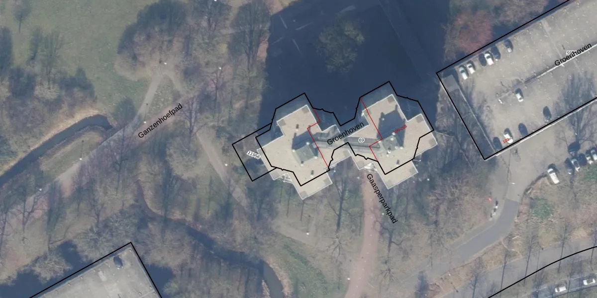 Het perceel waarop Groenhoven 229 staat heeft een oppervlakte van 1130 m². Dit is een zeer groot perceel. De perceeloppervlakte wordt geregistreerd door het Kadaster. Gedetailleerde informatie over de maten van dit perceel kunt u vinden in het rapport Kadastrale kaart met maatvoering van Groenhoven 229.