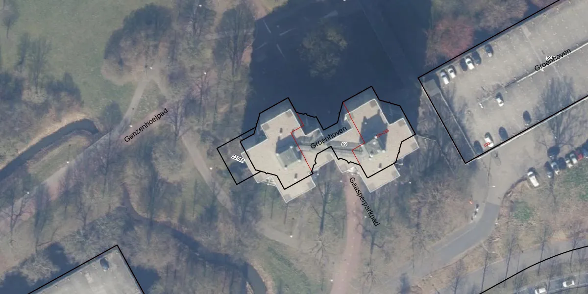 Het perceel waarop Groenhoven 248 staat heeft een oppervlakte van 1130 m². Dit is een zeer groot perceel. De perceeloppervlakte wordt geregistreerd door het Kadaster. Gedetailleerde informatie over de maten van dit perceel kunt u vinden in het rapport Kadastrale kaart met maatvoering van Groenhoven 248.