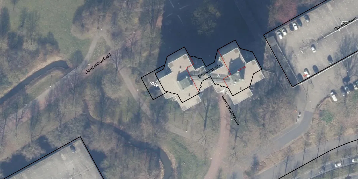 Het perceel waarop Groenhoven 259 staat heeft een oppervlakte van 1130 m². Dit is een zeer groot perceel. De perceeloppervlakte wordt geregistreerd door het Kadaster. Gedetailleerde informatie over de maten van dit perceel kunt u vinden in het rapport Kadastrale kaart met maatvoering van Groenhoven 259.