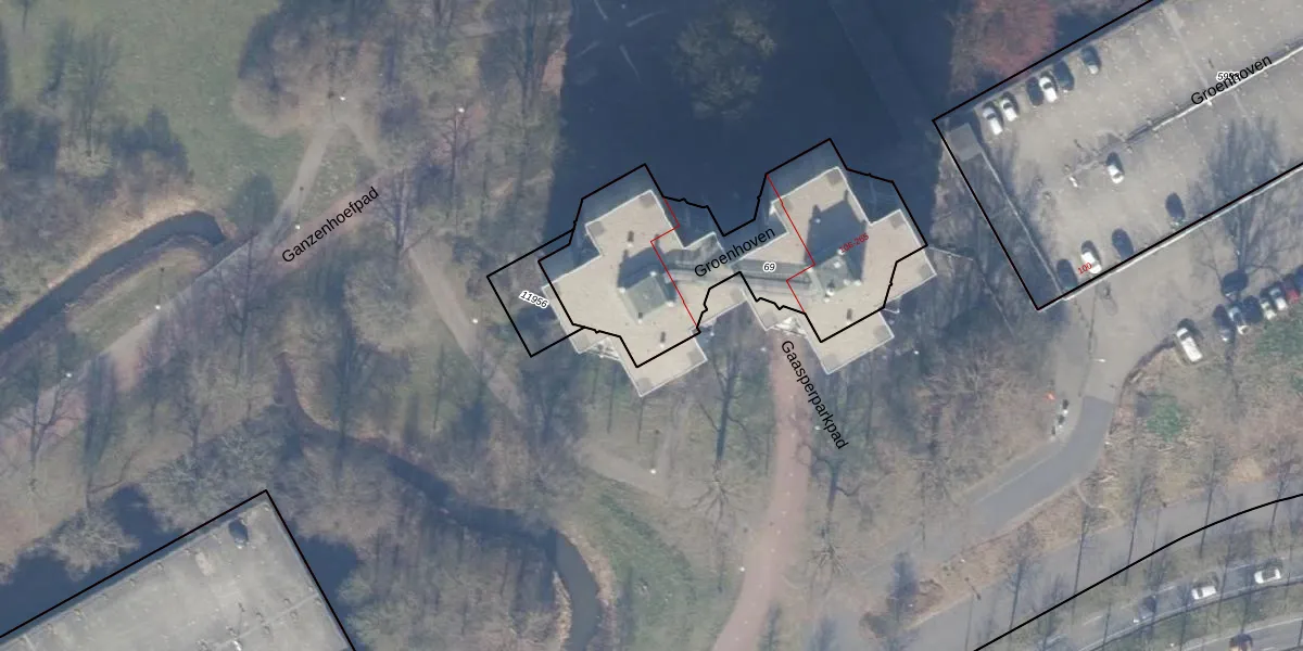 Het perceel waarop Groenhoven 265 staat heeft een oppervlakte van 1130 m². Dit is een zeer groot perceel. De perceeloppervlakte wordt geregistreerd door het Kadaster. Gedetailleerde informatie over de maten van dit perceel kunt u vinden in het rapport Kadastrale kaart met maatvoering van Groenhoven 265.