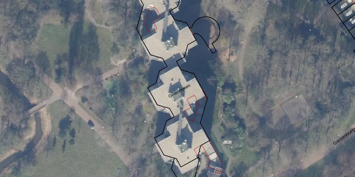 Het perceel waarop Groenhoven 438 staat heeft een oppervlakte van 5010 m². Dit is een zeer groot perceel. De perceeloppervlakte wordt geregistreerd door het Kadaster. Gedetailleerde informatie over de maten van dit perceel kunt u vinden in het rapport Kadastrale kaart met maatvoering van Groenhoven 438.