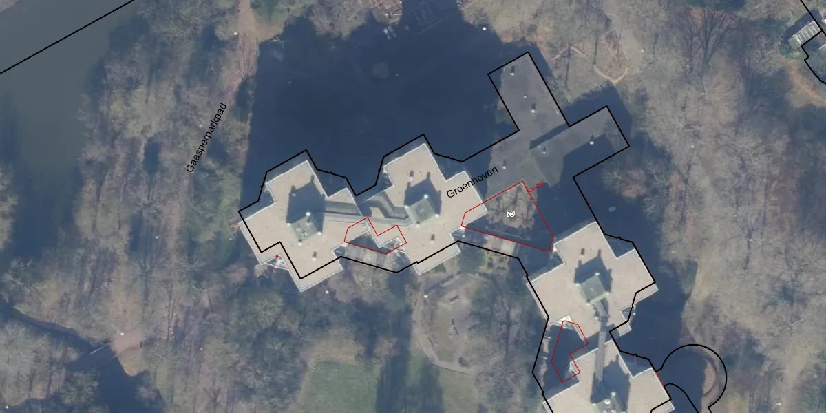Het perceel waarop Groenhoven 718 staat heeft een oppervlakte van 5010 m². Dit is een zeer groot perceel. De perceeloppervlakte wordt geregistreerd door het Kadaster. Gedetailleerde informatie over de maten van dit perceel kunt u vinden in het rapport Kadastrale kaart met maatvoering van Groenhoven 718.
