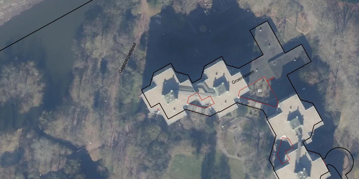 Het perceel waarop Groenhoven 850 staat heeft een oppervlakte van 5010 m². Dit is een zeer groot perceel. De perceeloppervlakte wordt geregistreerd door het Kadaster. Gedetailleerde informatie over de maten van dit perceel kunt u vinden in het rapport Kadastrale kaart met maatvoering van Groenhoven 850.