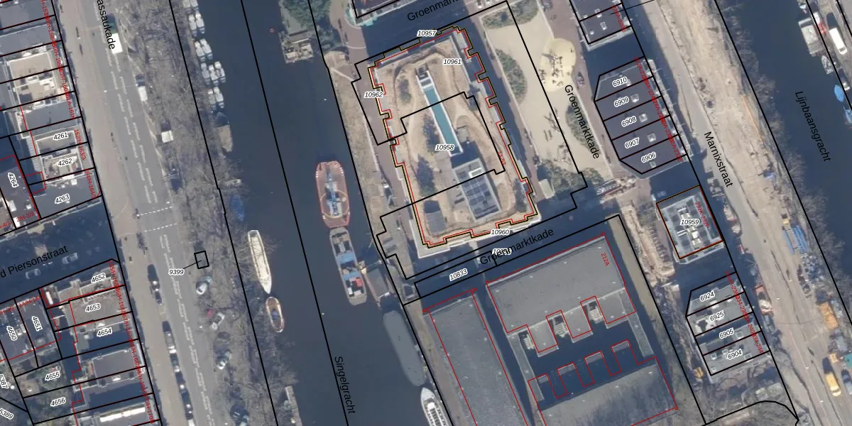 Groenmarktkade 20 is gelegen op kadastraal perceel ASD03E10961. Deze kadastrale aanduiding is uniek en wordt gebruikt door het Kadaster om eigendomsrechten en andere zakelijke rechten vast te leggen. Het perceel maakt onderdeel uit van de kadastrale gemeente Amsterdam.