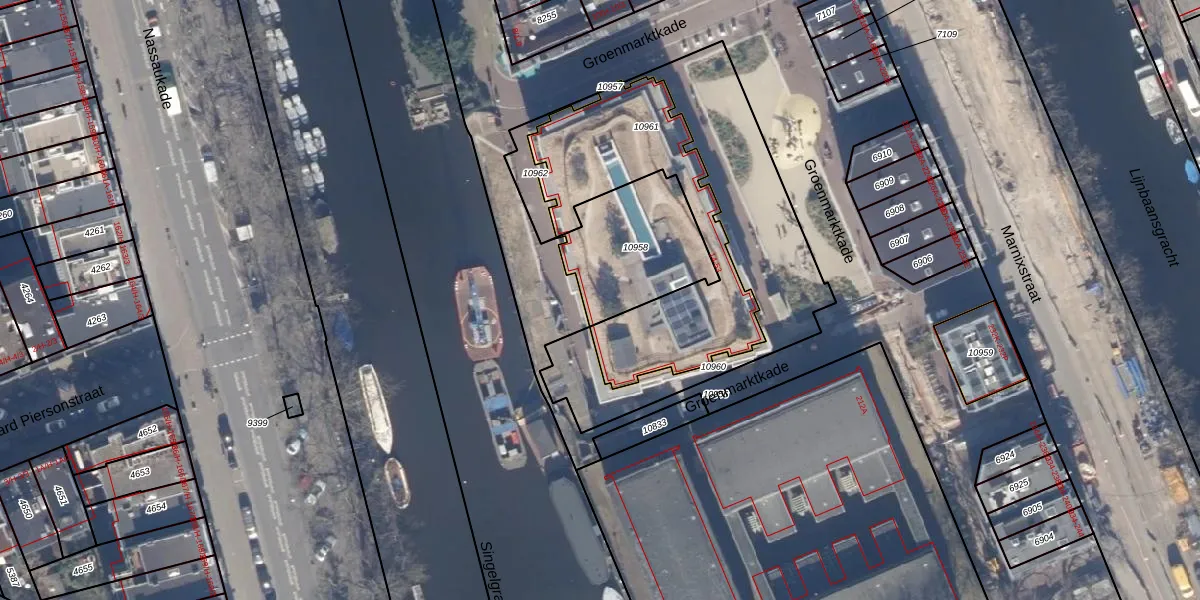 Groenmarktkade 21 is gelegen op kadastraal perceel ASD03E10958. Deze kadastrale aanduiding is uniek en wordt gebruikt door het Kadaster om eigendomsrechten en andere zakelijke rechten vast te leggen. Het perceel maakt onderdeel uit van de kadastrale gemeente Amsterdam.