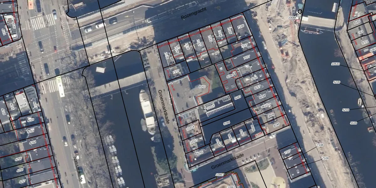 Groenmarktkade 3-B is gelegen op kadastraal perceel ASD03E8163. Deze kadastrale aanduiding is uniek en wordt gebruikt door het Kadaster om eigendomsrechten en andere zakelijke rechten vast te leggen. Het perceel maakt onderdeel uit van de kadastrale gemeente Amsterdam.