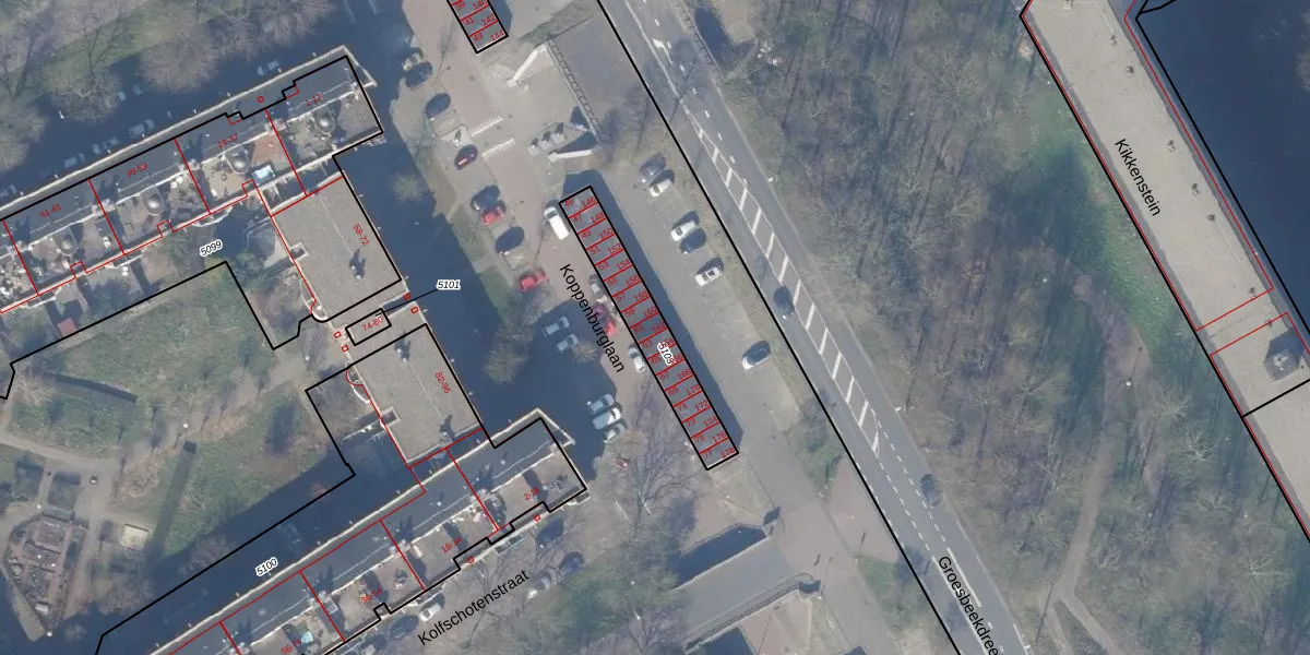 Groesbeekdreef 162 is gelegen op kadastraal perceel WPK02L5103. Deze kadastrale aanduiding is uniek en wordt gebruikt door het Kadaster om eigendomsrechten en andere zakelijke rechten vast te leggen. Het perceel maakt onderdeel uit van de kadastrale gemeente Weesperkarspel.