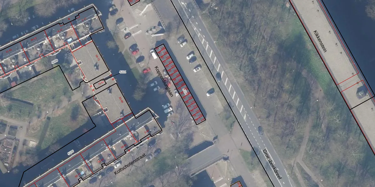 Groesbeekdreef 166 is gelegen op kadastraal perceel WPK02L5103. Deze kadastrale aanduiding is uniek en wordt gebruikt door het Kadaster om eigendomsrechten en andere zakelijke rechten vast te leggen. Het perceel maakt onderdeel uit van de kadastrale gemeente Weesperkarspel.