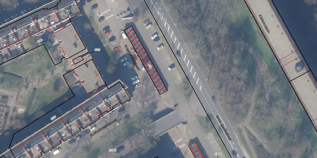 Groesbeekdreef 172 is gelegen op kadastraal perceel WPK02L5103. Deze kadastrale aanduiding is uniek en wordt gebruikt door het Kadaster om eigendomsrechten en andere zakelijke rechten vast te leggen. Het perceel maakt onderdeel uit van de kadastrale gemeente Weesperkarspel.