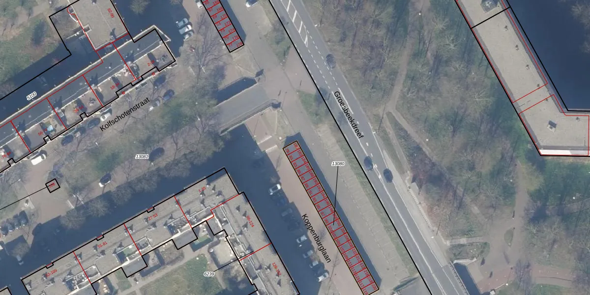Groesbeekdreef 180 is gelegen op kadastraal perceel WPK02L13080. Deze kadastrale aanduiding is uniek en wordt gebruikt door het Kadaster om eigendomsrechten en andere zakelijke rechten vast te leggen. Het perceel maakt onderdeel uit van de kadastrale gemeente Weesperkarspel.