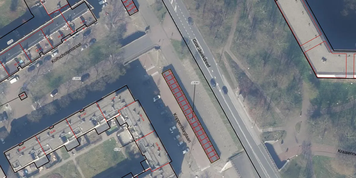 Groesbeekdreef 188 is gelegen op kadastraal perceel WPK02L13080. Deze kadastrale aanduiding is uniek en wordt gebruikt door het Kadaster om eigendomsrechten en andere zakelijke rechten vast te leggen. Het perceel maakt onderdeel uit van de kadastrale gemeente Weesperkarspel.