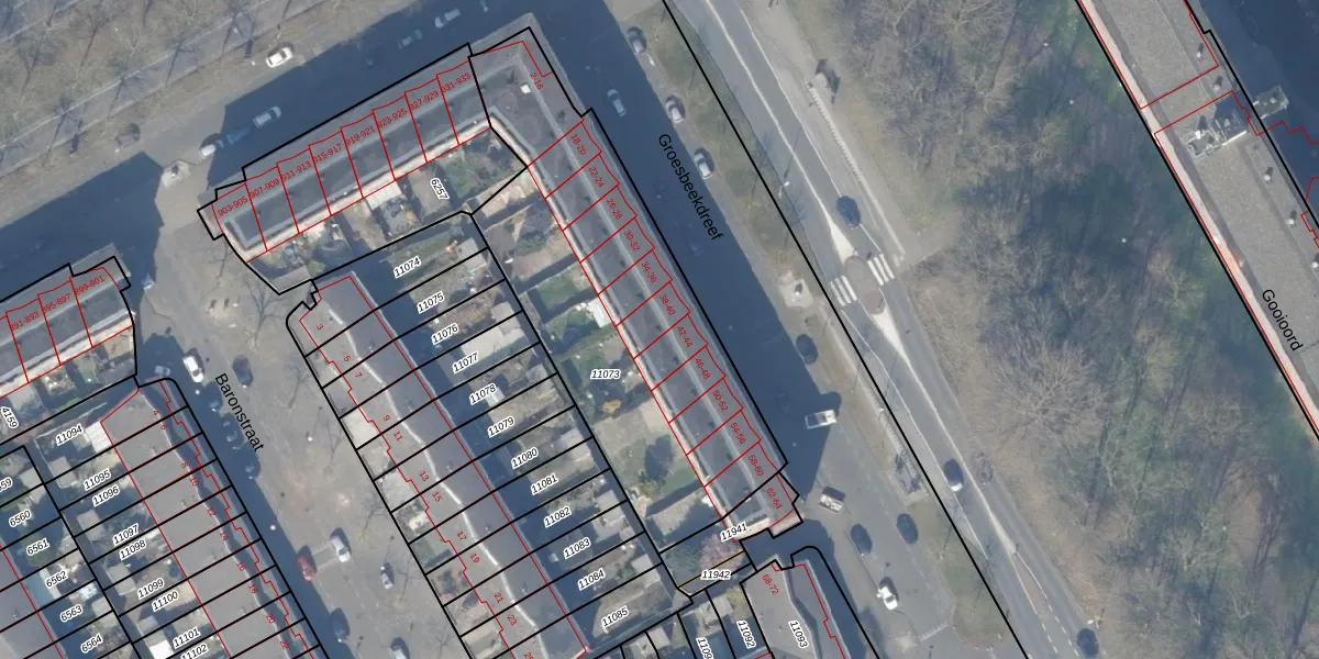 Groesbeekdreef 40 is gelegen op kadastraal perceel WPK02L11073. Deze kadastrale aanduiding is uniek en wordt gebruikt door het Kadaster om eigendomsrechten en andere zakelijke rechten vast te leggen. Het perceel maakt onderdeel uit van de kadastrale gemeente Weesperkarspel.