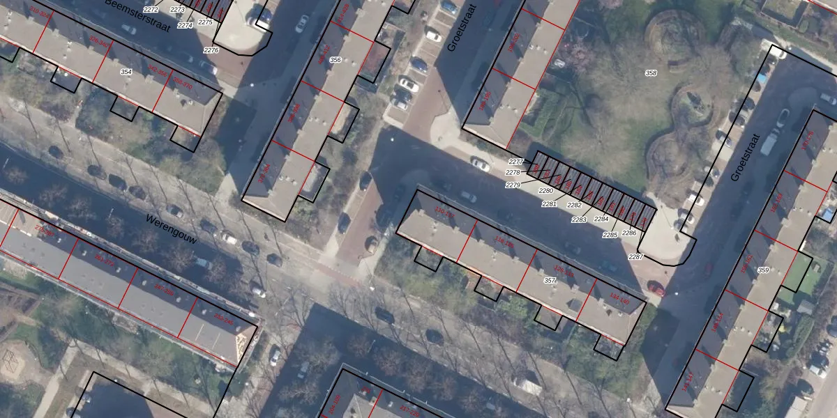 Het perceel waarop Groetstraat 110 staat heeft een oppervlakte van 804 m². Dit is een groot perceel. De perceeloppervlakte wordt geregistreerd door het Kadaster. Gedetailleerde informatie over de maten van dit perceel kunt u vinden in het rapport Kadastrale kaart met maatvoering van Groetstraat 110.