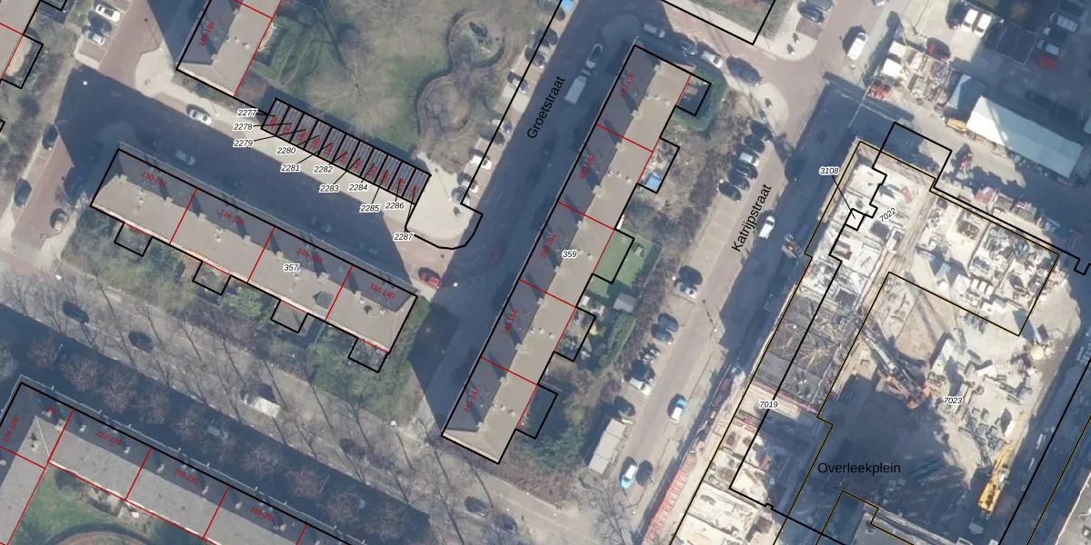 Groetstraat 155 is gelegen op kadastraal perceel ASD31AL359. Deze kadastrale aanduiding is uniek en wordt gebruikt door het Kadaster om eigendomsrechten en andere zakelijke rechten vast te leggen. Het perceel maakt onderdeel uit van de kadastrale gemeente Amsterdam.