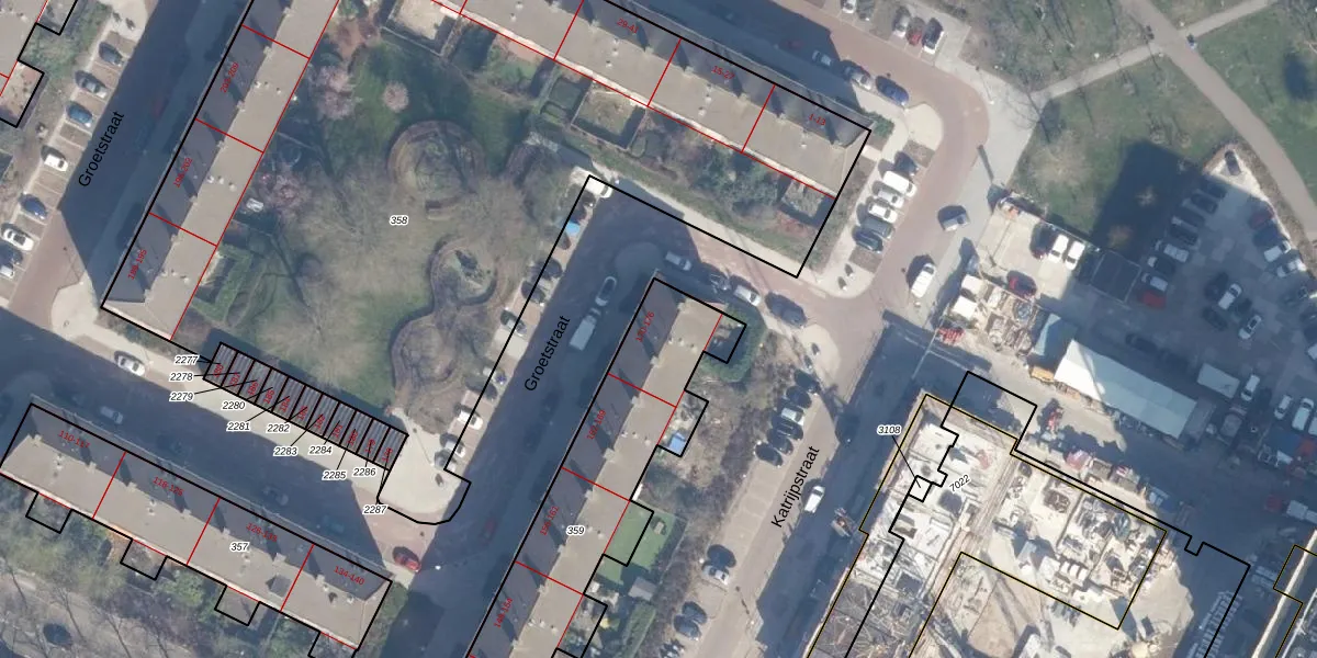 Groetstraat 174 is gelegen op kadastraal perceel ASD31AL359. Deze kadastrale aanduiding is uniek en wordt gebruikt door het Kadaster om eigendomsrechten en andere zakelijke rechten vast te leggen. Het perceel maakt onderdeel uit van de kadastrale gemeente Amsterdam.