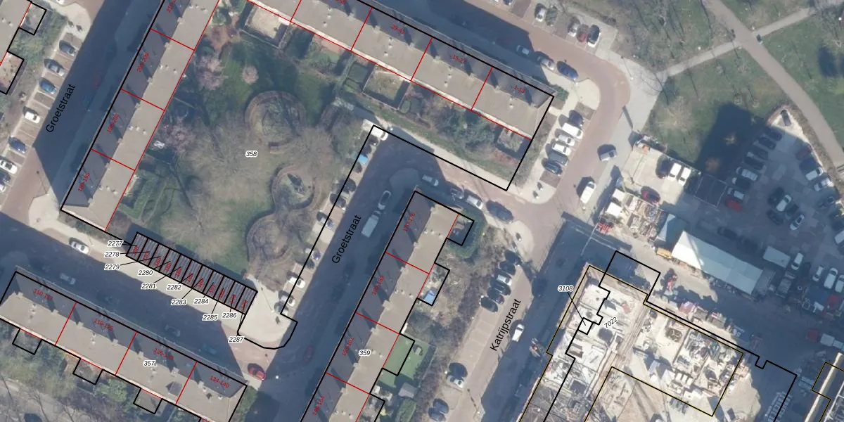 Groetstraat 176 is gelegen op kadastraal perceel ASD31AL359. Deze kadastrale aanduiding is uniek en wordt gebruikt door het Kadaster om eigendomsrechten en andere zakelijke rechten vast te leggen. Het perceel maakt onderdeel uit van de kadastrale gemeente Amsterdam.