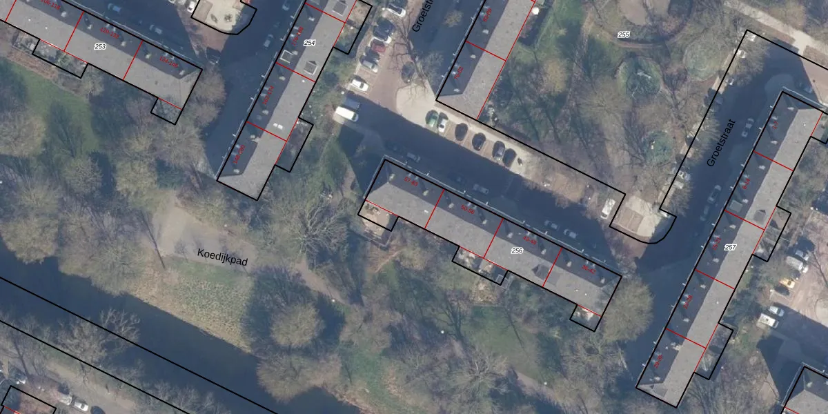 Het perceel waarop Groetstraat 58 staat heeft een oppervlakte van 810 m². Dit is een groot perceel. De perceeloppervlakte wordt geregistreerd door het Kadaster. Gedetailleerde informatie over de maten van dit perceel kunt u vinden in het rapport Kadastrale kaart met maatvoering van Groetstraat 58.