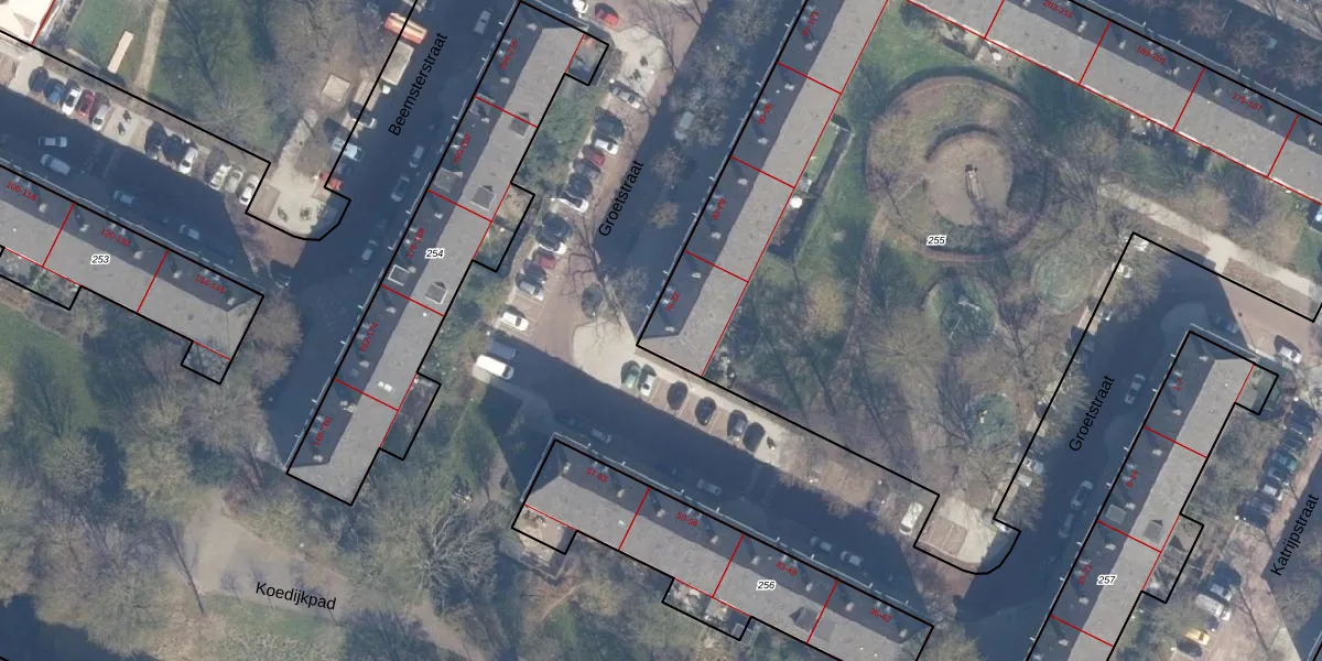 Het perceel waarop Groetstraat 77 staat heeft een oppervlakte van 5495 m². Dit is een zeer groot perceel. De perceeloppervlakte wordt geregistreerd door het Kadaster. Gedetailleerde informatie over de maten van dit perceel kunt u vinden in het rapport Kadastrale kaart met maatvoering van Groetstraat 77.