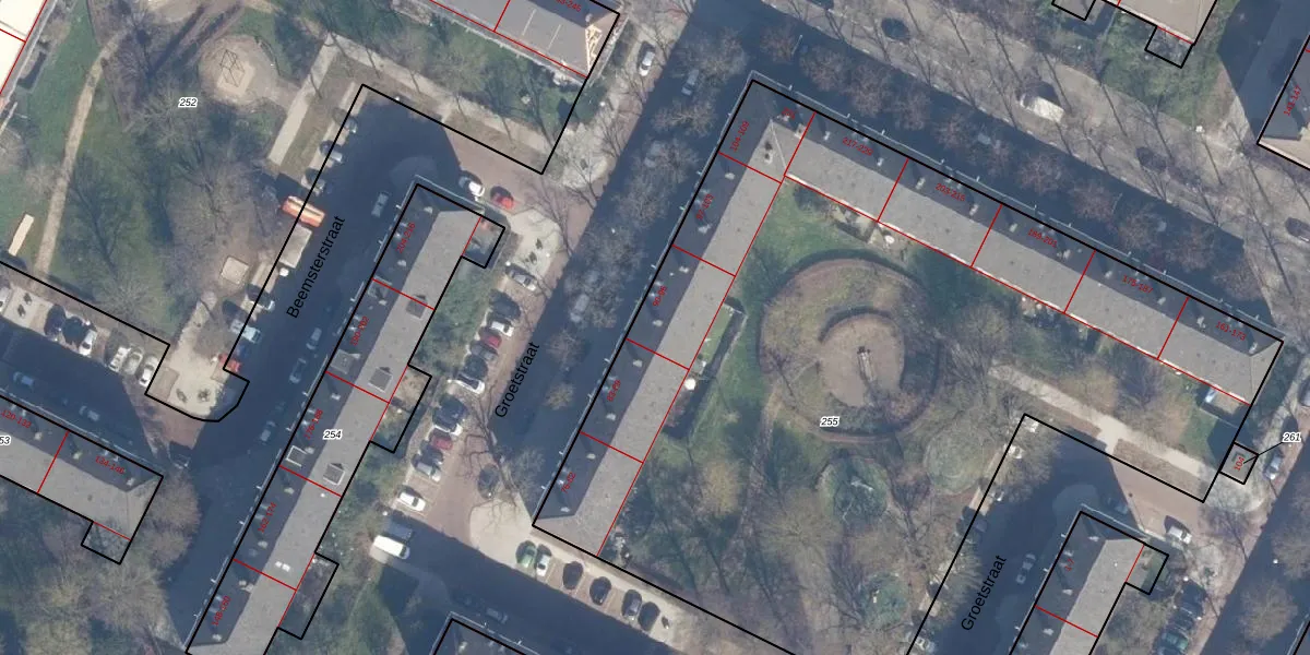 Groetstraat 90 is gelegen op kadastraal perceel ASD31AL255. Deze kadastrale aanduiding is uniek en wordt gebruikt door het Kadaster om eigendomsrechten en andere zakelijke rechten vast te leggen. Het perceel maakt onderdeel uit van de kadastrale gemeente Amsterdam.