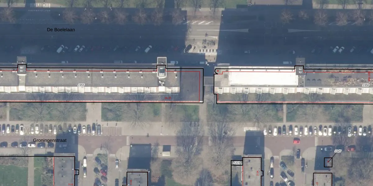 Het perceel waarop Groningenstraat 2-B staat heeft een oppervlakte van 2638 m². Dit is een zeer groot perceel. De perceeloppervlakte wordt geregistreerd door het Kadaster. Gedetailleerde informatie over de maten van dit perceel kunt u vinden in het rapport Kadastrale kaart met maatvoering van Groningenstraat 2-B.