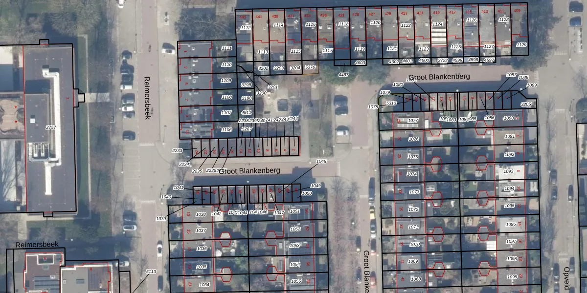 Gebruik de zoekbalk of klik op een perceel voor informatie over de adressen binnen dit perceel.