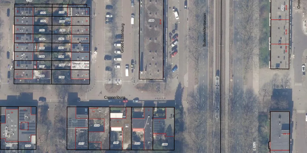 Het perceel waarop Groot-Essenburg 22 staat heeft een oppervlakte van 1223 m². Dit is een zeer groot perceel. De perceeloppervlakte wordt geregistreerd door het Kadaster. Gedetailleerde informatie over de maten van dit perceel kunt u vinden in het rapport Kadastrale kaart met maatvoering van Groot-Essenburg 22.