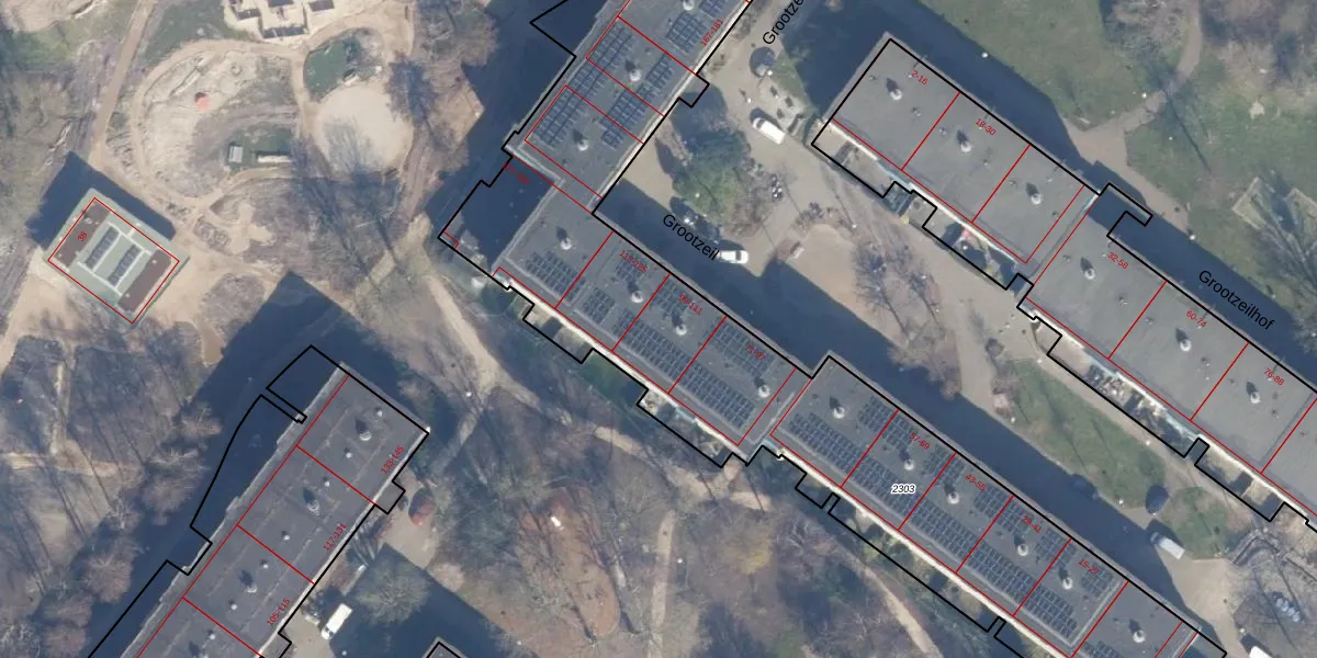 Grootzeil 111 is gelegen op kadastraal perceel ASD36AQ2303. Deze kadastrale aanduiding is uniek en wordt gebruikt door het Kadaster om eigendomsrechten en andere zakelijke rechten vast te leggen. Het perceel maakt onderdeel uit van de kadastrale gemeente Amsterdam.