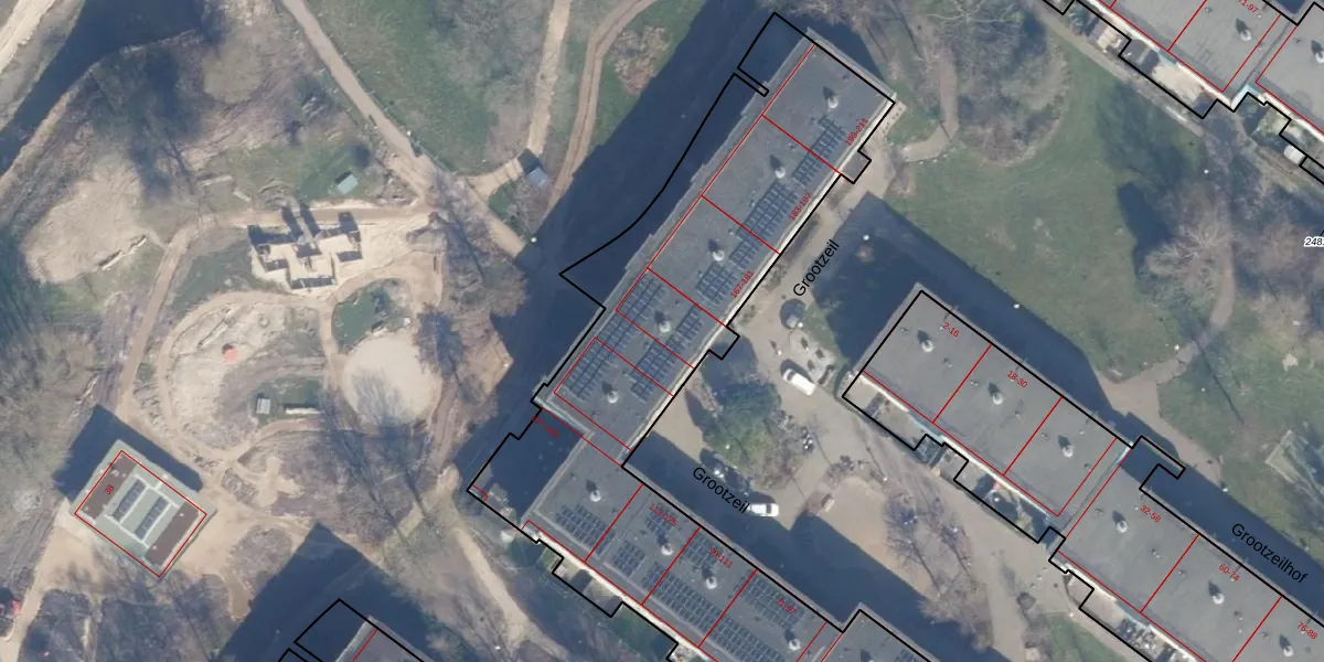 Het perceel waarop Grootzeil 157 staat heeft een oppervlakte van 6940 m². Dit is een zeer groot perceel. De perceeloppervlakte wordt geregistreerd door het Kadaster. Gedetailleerde informatie over de maten van dit perceel kunt u vinden in het rapport Kadastrale kaart met maatvoering van Grootzeil 157.