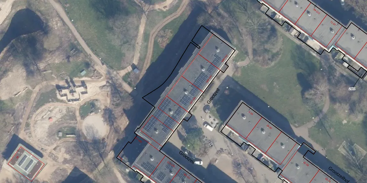 Het perceel waarop Grootzeil 175 staat heeft een oppervlakte van 6940 m². Dit is een zeer groot perceel. De perceeloppervlakte wordt geregistreerd door het Kadaster. Gedetailleerde informatie over de maten van dit perceel kunt u vinden in het rapport Kadastrale kaart met maatvoering van Grootzeil 175.
