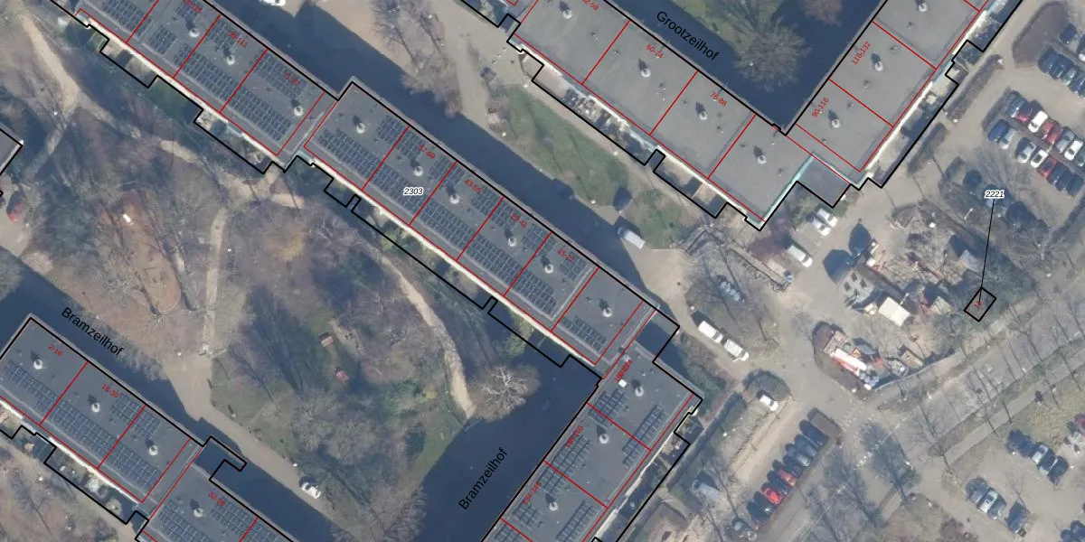Grootzeil 21 is gelegen op kadastraal perceel ASD36AQ2303. Deze kadastrale aanduiding is uniek en wordt gebruikt door het Kadaster om eigendomsrechten en andere zakelijke rechten vast te leggen. Het perceel maakt onderdeel uit van de kadastrale gemeente Amsterdam.