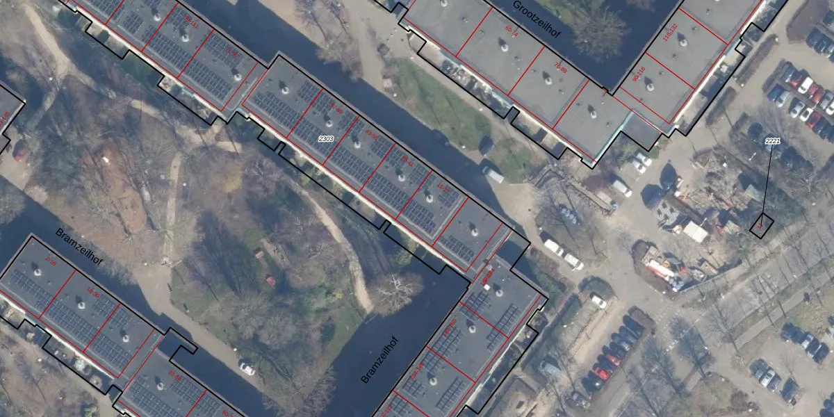 Het perceel waarop Grootzeil 25 staat heeft een oppervlakte van 6940 m². Dit is een zeer groot perceel. De perceeloppervlakte wordt geregistreerd door het Kadaster. Gedetailleerde informatie over de maten van dit perceel kunt u vinden in het rapport Kadastrale kaart met maatvoering van Grootzeil 25.