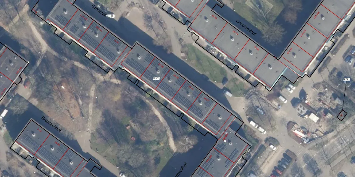 Grootzeil 43 is gelegen op kadastraal perceel ASD36AQ2303. Deze kadastrale aanduiding is uniek en wordt gebruikt door het Kadaster om eigendomsrechten en andere zakelijke rechten vast te leggen. Het perceel maakt onderdeel uit van de kadastrale gemeente Amsterdam.