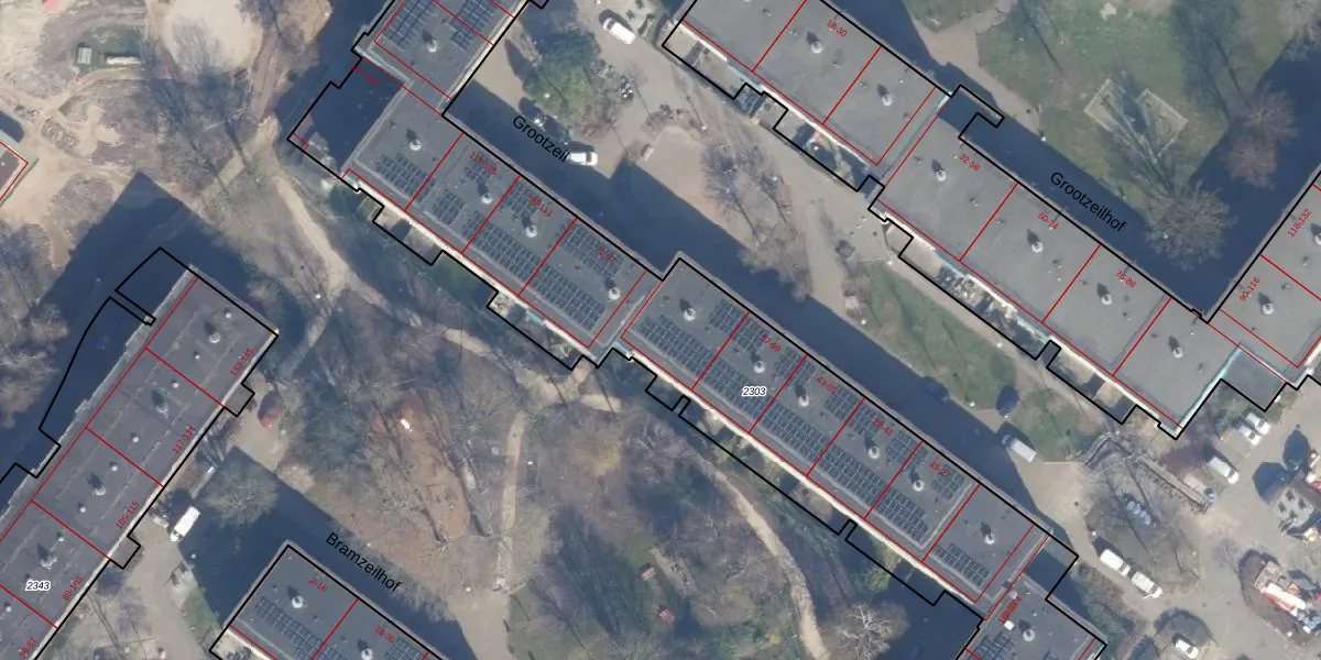 Grootzeil 77 is gelegen op kadastraal perceel ASD36AQ2303. Deze kadastrale aanduiding is uniek en wordt gebruikt door het Kadaster om eigendomsrechten en andere zakelijke rechten vast te leggen. Het perceel maakt onderdeel uit van de kadastrale gemeente Amsterdam.
