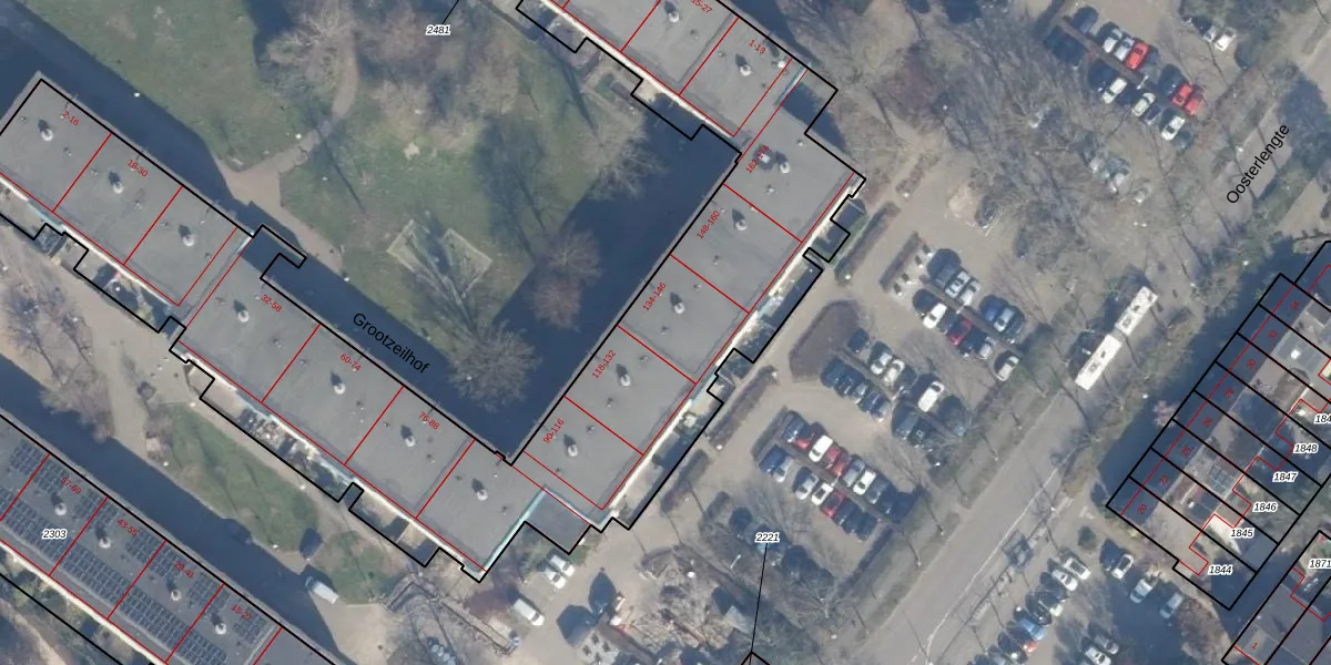 Het perceel waarop Grootzeilhof 134 staat heeft een oppervlakte van 6935 m². Dit is een zeer groot perceel. De perceeloppervlakte wordt geregistreerd door het Kadaster. Gedetailleerde informatie over de maten van dit perceel kunt u vinden in het rapport Kadastrale kaart met maatvoering van Grootzeilhof 134.