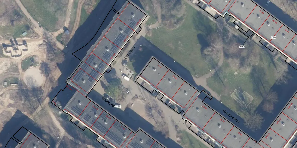 Het perceel waarop Grootzeilhof 14 staat heeft een oppervlakte van 6935 m². Dit is een zeer groot perceel. De perceeloppervlakte wordt geregistreerd door het Kadaster. Gedetailleerde informatie over de maten van dit perceel kunt u vinden in het rapport Kadastrale kaart met maatvoering van Grootzeilhof 14.