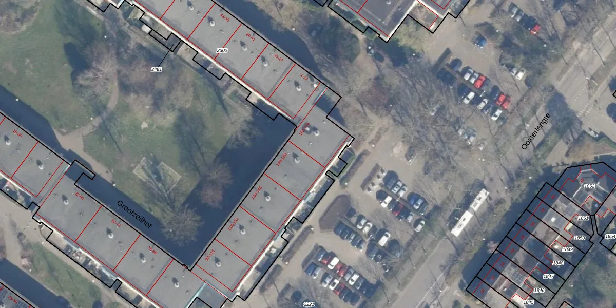Het perceel waarop Grootzeilhof 164 staat heeft een oppervlakte van 6935 m². Dit is een zeer groot perceel. De perceeloppervlakte wordt geregistreerd door het Kadaster. Gedetailleerde informatie over de maten van dit perceel kunt u vinden in het rapport Kadastrale kaart met maatvoering van Grootzeilhof 164.