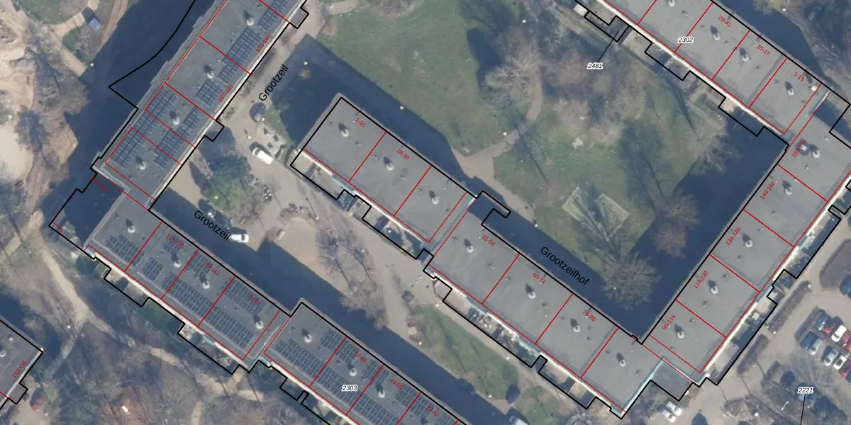 Het perceel waarop Grootzeilhof 34 staat heeft een oppervlakte van 6935 m². Dit is een zeer groot perceel. De perceeloppervlakte wordt geregistreerd door het Kadaster. Gedetailleerde informatie over de maten van dit perceel kunt u vinden in het rapport Kadastrale kaart met maatvoering van Grootzeilhof 34.
