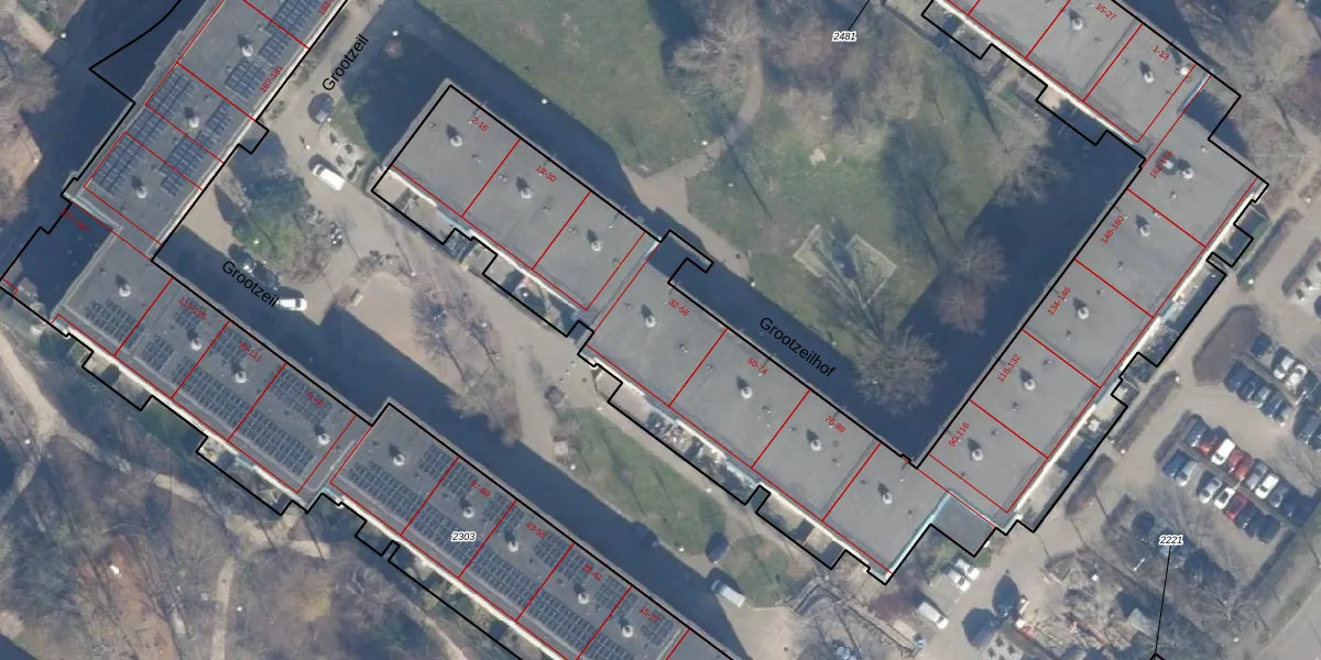Het perceel waarop Grootzeilhof 52 staat heeft een oppervlakte van 6935 m². Dit is een zeer groot perceel. De perceeloppervlakte wordt geregistreerd door het Kadaster. Gedetailleerde informatie over de maten van dit perceel kunt u vinden in het rapport Kadastrale kaart met maatvoering van Grootzeilhof 52.