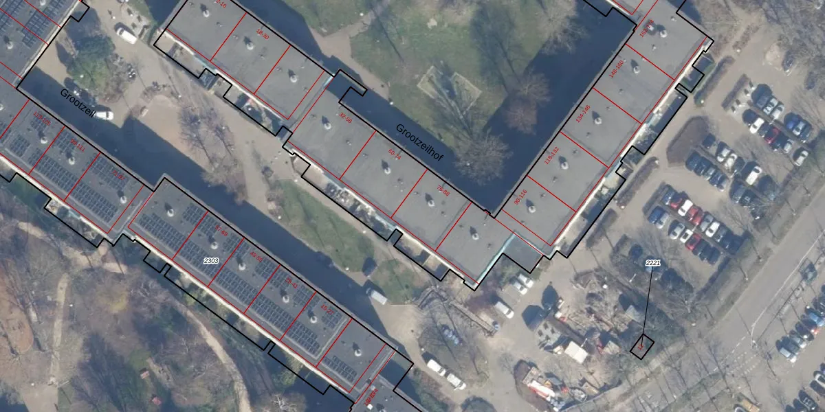 Het perceel waarop Grootzeilhof 78 staat heeft een oppervlakte van 6935 m². Dit is een zeer groot perceel. De perceeloppervlakte wordt geregistreerd door het Kadaster. Gedetailleerde informatie over de maten van dit perceel kunt u vinden in het rapport Kadastrale kaart met maatvoering van Grootzeilhof 78.