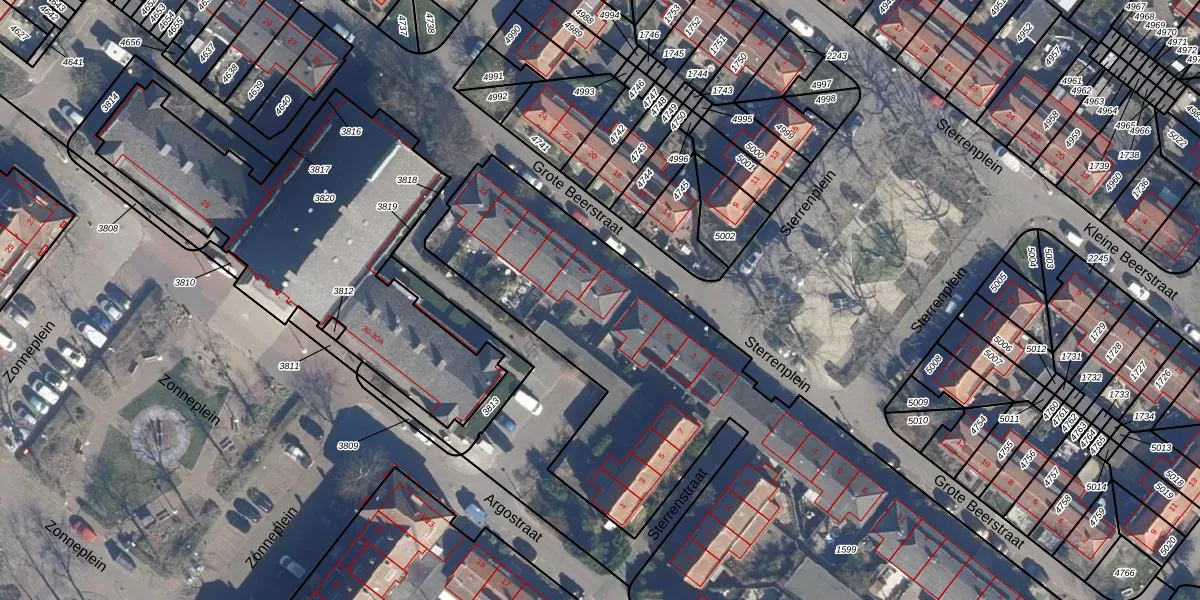 Het perceel waarop Grote Beerstraat 13 staat heeft een oppervlakte van 4499 m². Dit is een zeer groot perceel. De perceeloppervlakte wordt geregistreerd door het Kadaster. Gedetailleerde informatie over de maten van dit perceel kunt u vinden in het rapport Kadastrale kaart met maatvoering van Grote Beerstraat 13.